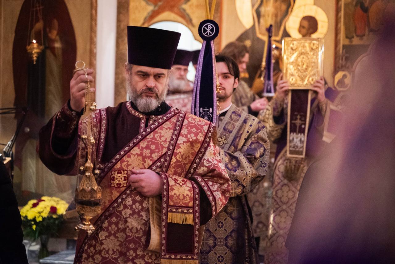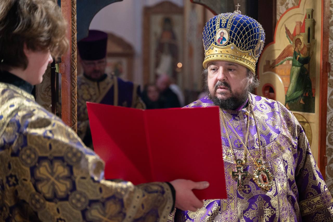 Его преосвященству сослужили протоиерей Сергей Храпицкий, иерей Сергий Лебедь, протодиакон Виталий Дубяга и протодиакон Олег Тарасевич.